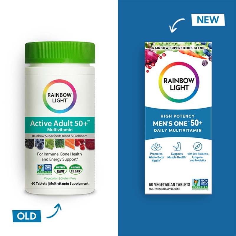 Rainbow Light Multivitamin for Men 50+, Vitamin C, D & Zinc, Probiotics, Men's One 50+ Multivitamin Provides High Potency Immune Support, Non-GMO, Vegetarian, 60 Tablets