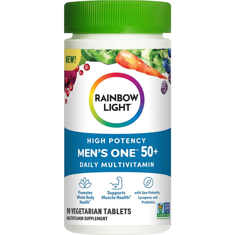 Rainbow Light Multivitamin for Men 50+, Vitamin C, D & Zinc, Probiotics, Men's One 50+ Multivitamin Provides High Potency Immune Support, Non-GMO, Vegetarian, 90 Tablets