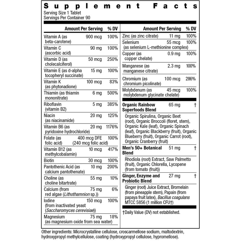 - MEN’S MULTIVITAMIN WITH READY-TO-ABSORB MINERALS: Rainbow Light Men’s One 50+ High Potency Daily Multivitamin is formulated with bioavailable minerals to support absorption*