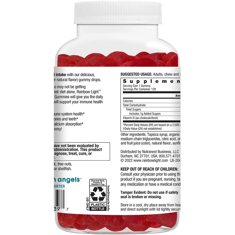 Rainbow Light Vitamin D Gummies, High Potency Vitamin D3 2,000IU Immune Health Support, Helps Support Strong Bones & Teeth, Gluten Free, Vegan, Peach, 120 Gummies