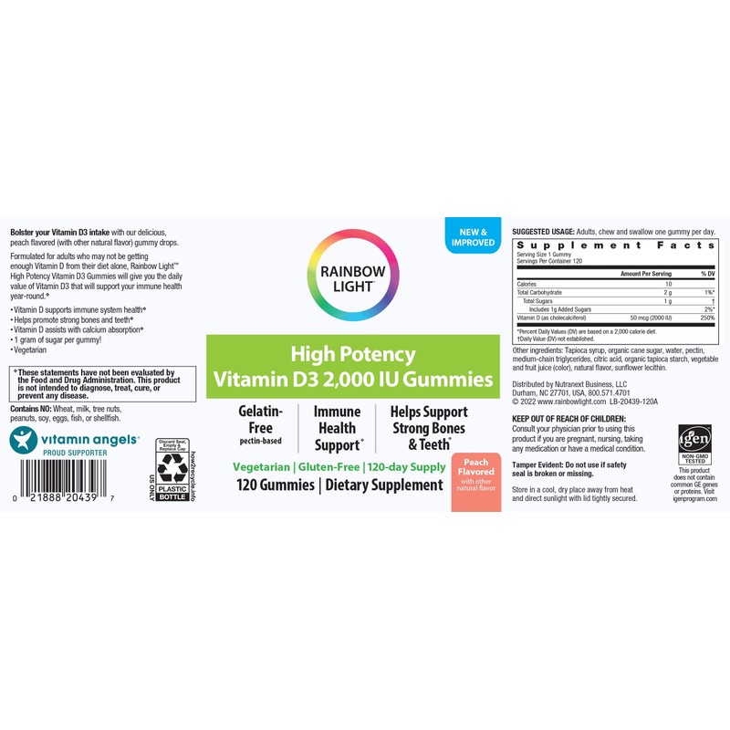 - BOLSTER YOUR VITAMIN D3 INTAKE: Get 2,000 IU of vitamin D3 per serving with Rainbow Light gelatin-free, pectin-based, High Potency Vitamin D3 Gummies for adults (Package May Vary)