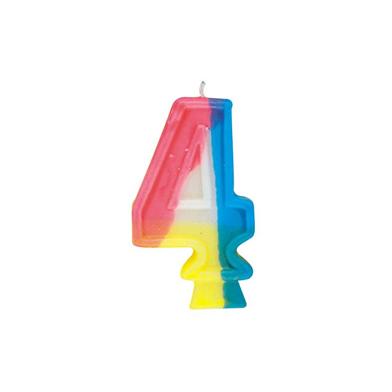 Create a colorful birthday cake with this Rainbow Number 4 Birthday Candle. This candle topper is in the shape of the number four and is perfect for a fourth birthday party or for combining with other number candles to celebrate a different birthday. Coordinate with other rainbow party decorations for a festive and vibrant affair.