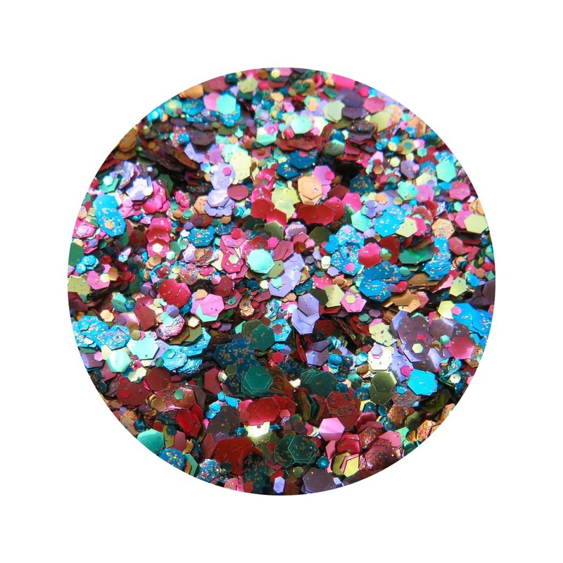 - Bold Rainbow Glitter: A vibrant, multi-colour blend of bold reds, blues, greens, yellows, and purples, creating a dazzling rainbow effect for maximum impact.