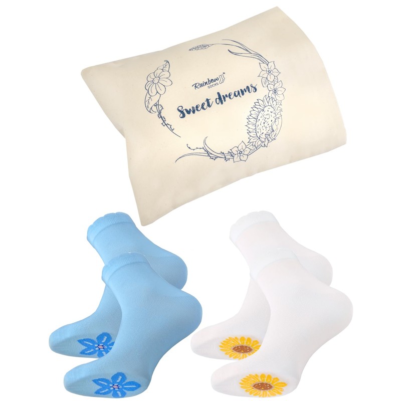 • Comfortable pillow - it will definitely make falling asleep easier. Especially if it is a rainbow socks pillow! Inside you will find 2 pairs of soft socks with a delicate flower on the foot. Put them on your feet in the evening: you will fall asleep faster and your sleep will be longer and deeper
