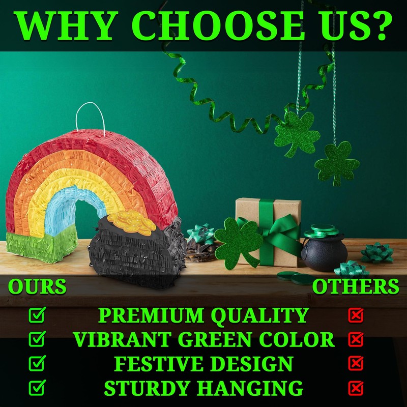 • Pot of Gold Surprise for Extra Joy: Experience the thrill of discovery as the piñata reveals a delightful Pot of Gold, making it an ideal choice for St. Patrick's Day celebrations or any lively event where surprises and joy take center stage