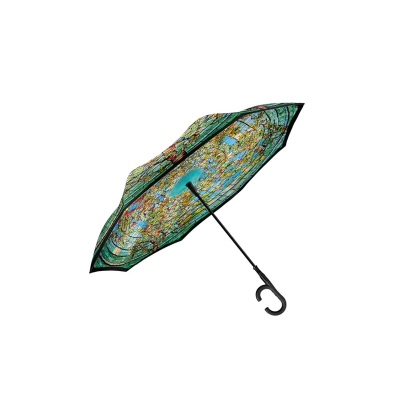 RainCaper Reverse Inverted (inside-out) Windproof Driehaus Maher Dome Designer Print Reverse-opening Upside Down Umbrella with C-shaped Handsfree Handle