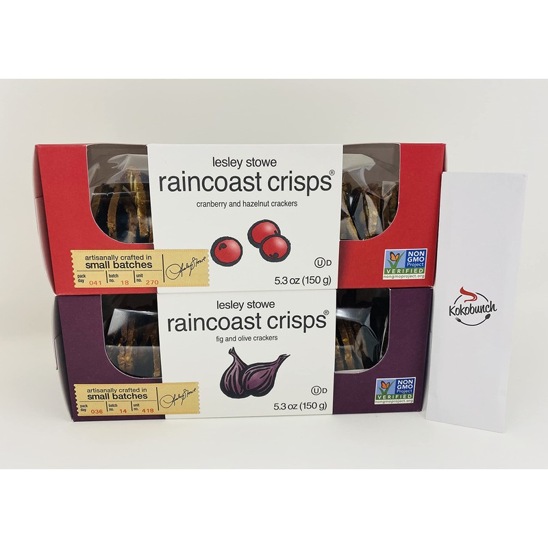 Raincoast Crisps Crackers Variety Bundle | Cranberry Crisps & Hazelnut | Fig & Olive With Kokobunch Kit by Lesley Stowe| 2 Pk - 5.3 oz
