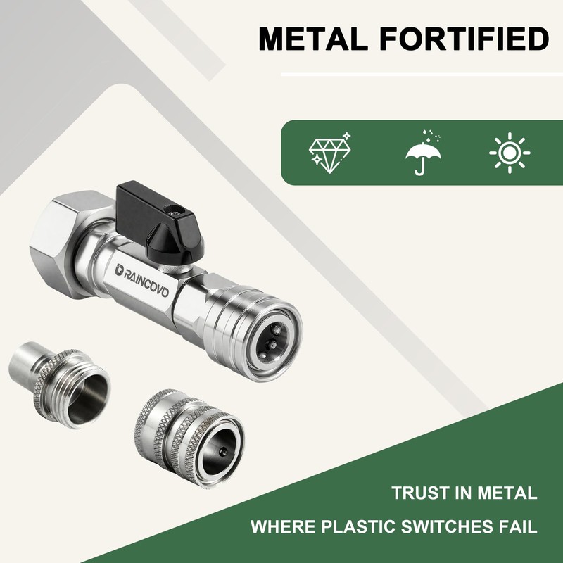 Compact Portability: The adapter is lightweight and compact for easy carrying and installation. Simply connect it quickly to the hose and the nozzle, and open the valve for immediate use. The quick-connect enhances portability, enabling rapid attachment removal during harsh weather to protect equipment from damage, while easily connecting multiple hose segments to extend coverage.