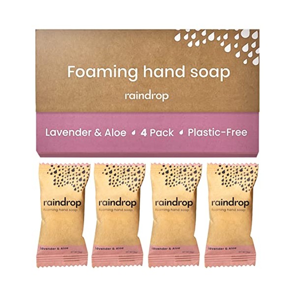 Raindrop Sustainable Hand Soap Refills, 4x Plastic-Free Foaming Hand Soap Refills (Lavender and Aloe)