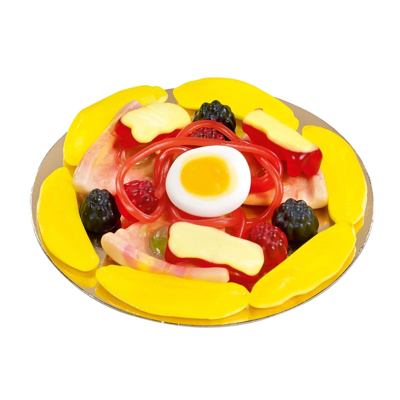 - SATISFY YOUR SWEET TOOTH: The gummy pizza offers a assortment of fruit candy to enjoy and includes colorful and tasty gummies in a variety of shapes, sizes and textures. Makes a great novelty gift for pizza lovers.