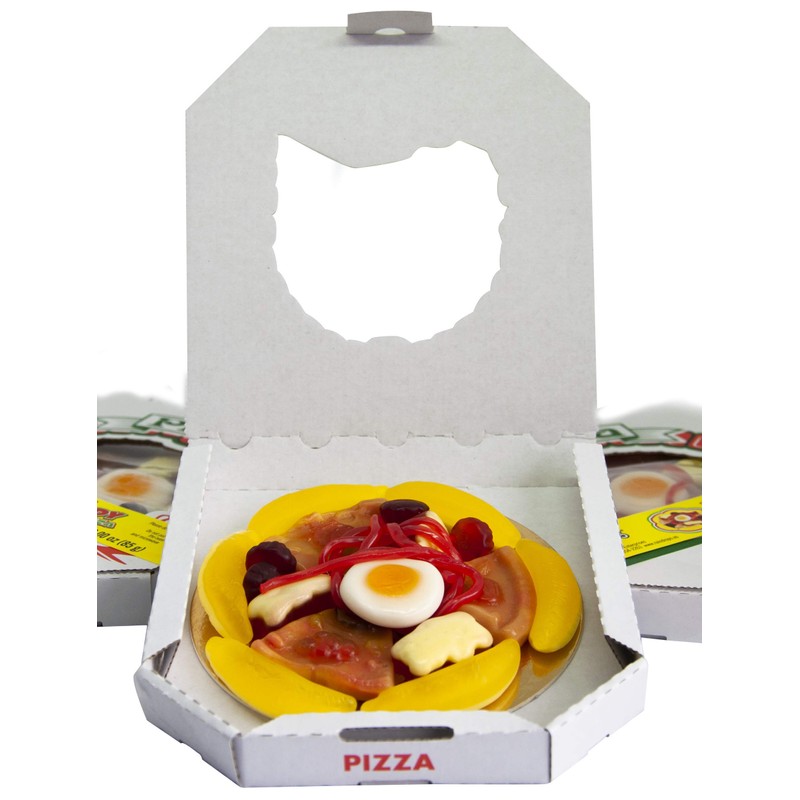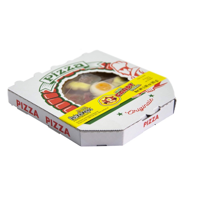- FUN GUMMY CANDY: A super cute pizza box with gummy candies modeled after real pizza toppings and garnishes. 18 gummies per pizza. The pizza is 4.5” in diameter.