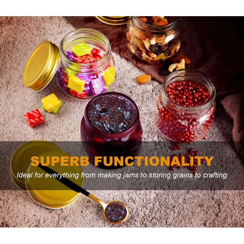 - ✅ CLASSIC DESIGN: The crystal clear and smooth design of these glass jars ensure the highest visibility possible, allowing you to easily see the contents inside. Every small jars involved a metal screw-on lid with plastisol liner that ensures an airtight seal, which will keep beverages tasting fresh and prevent dry foods from going stale.