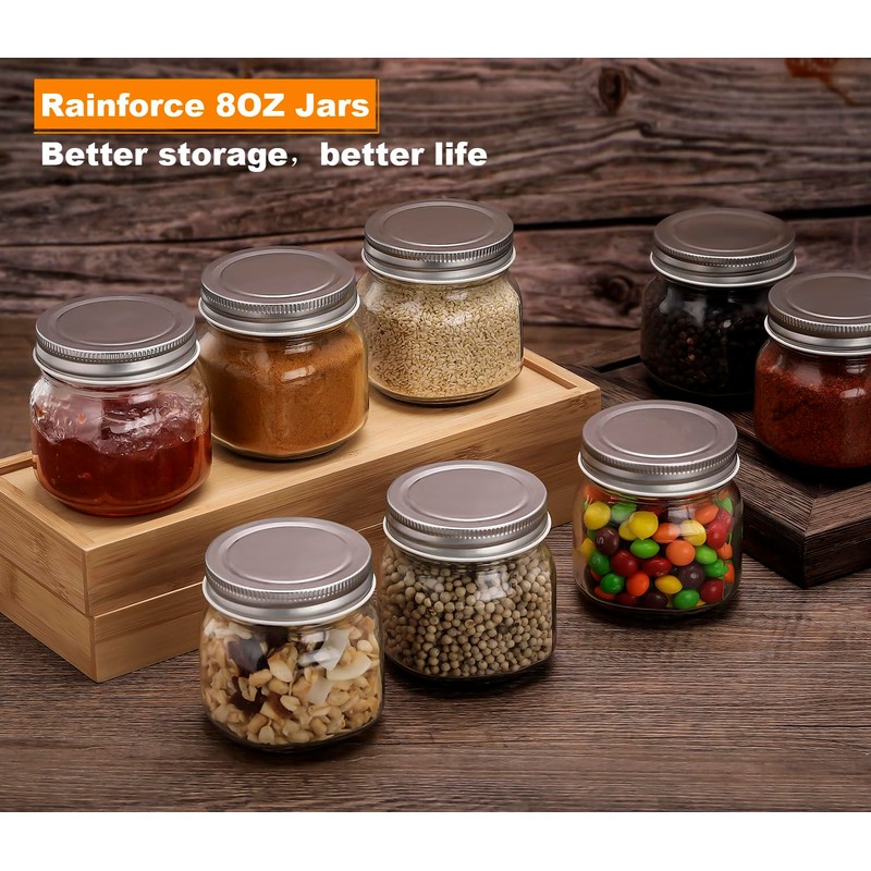 - PREMIUM QUALITYRainforce canning jar 8 oz is made of high quality thick glass that resists cracking and breaking. The glass of these mason jars are 100% food safe and lead-free for food storage and beverage drinking. For your convenience, these small jelly jars are dishwasher safe