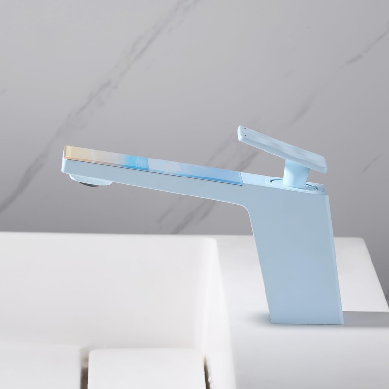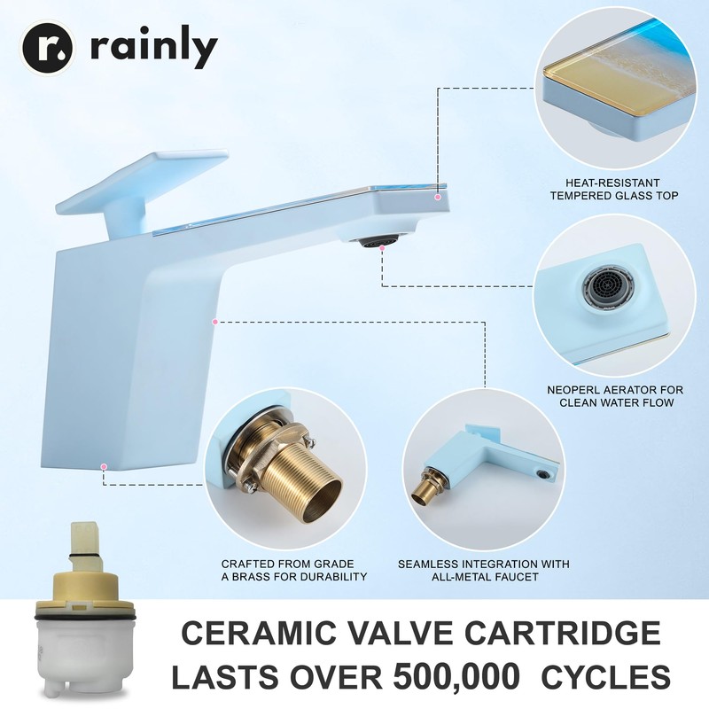 Rainly Pastel Blue Single Hole Bathroom Sink Faucet with Tempered Glass Spout, Single Handle Faucet for Bathroom Vanity