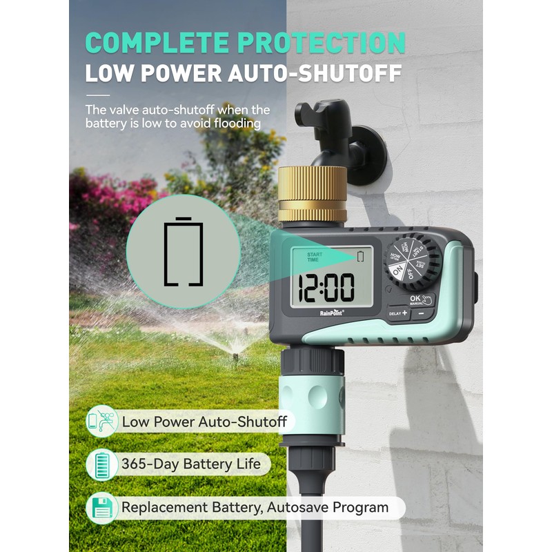 Safe Shutoff: When the battery power is low, the valve will be closed to avoid water leakage