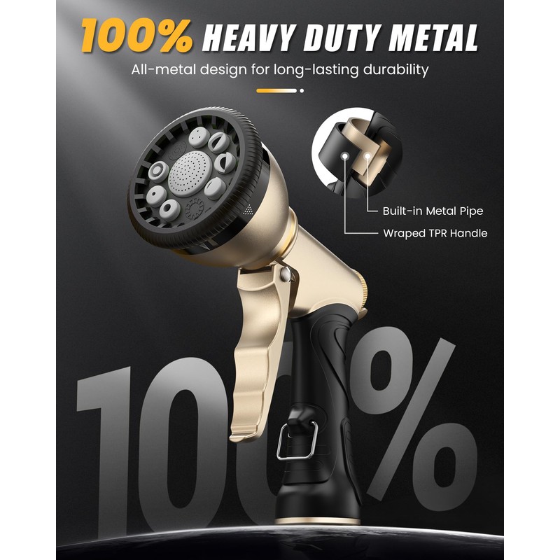 RAINPOINT Garden Hose Nozzle, Hose Sprayer Nozzle with 9 Spray Patterns, High Pressure Water Hose Nozzle Heavy Duty Metal Hand Sprayer, Watering Plants and Lawn,Grey