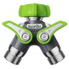 RAINPOINT Garden Hose Splitter, 2 Way Heavy Duty Water Hose Y Spigot Splitter with Shutoff Valves, 100% Metal Body Outdoor Faucet Splitter, 1.9" Extra Long Metal Handle, 3/4" GHT Thread (2, Green)
