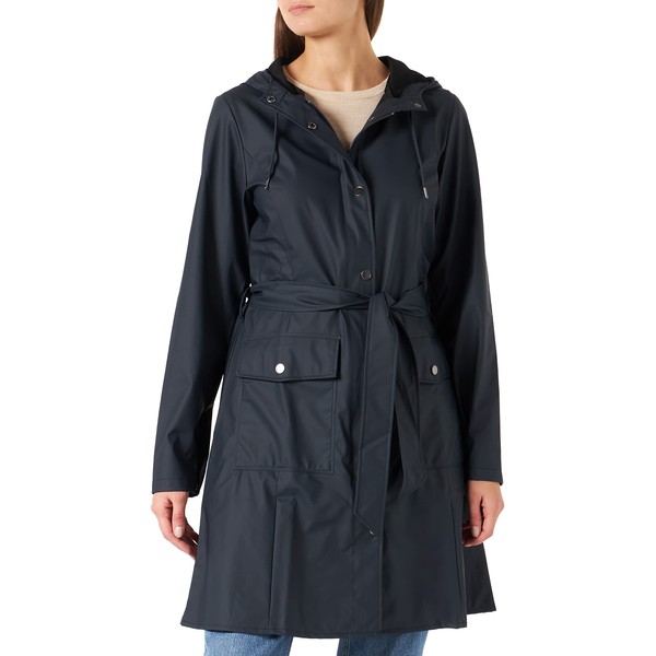 RAINS Curve W Jacket – Navy Waterproof Windproof Water-Resistant Water-Repellent Lightweight Breathable Fitted Silhouette Adjustable Hood Soft-Touch Finish – 2 Year Warranty