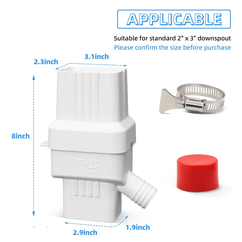 - FITS SIZE FOR RAINWATER COLLECTOR - Designed to fit standard rectangular 2'' x 3'' traditional downspouts (actual dimensions: 2.25-in x 3.125-in). Please make sure the size of the downspout before purchasing for a better experience.