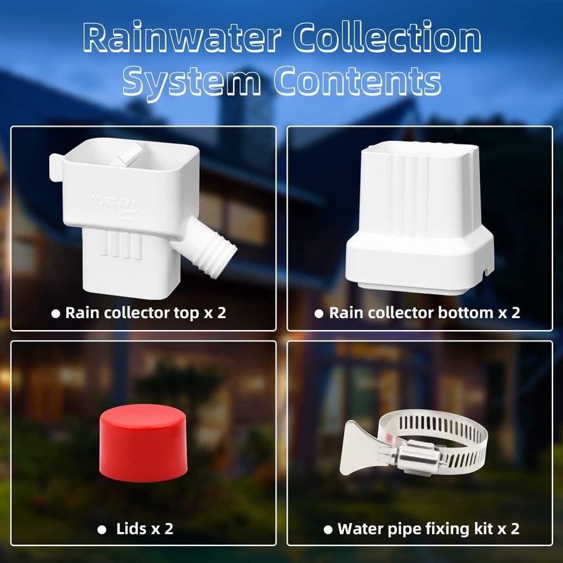 Rainwater Collection System(2 Sets)- Rain barrel diverter kit for rainwater collection from gutter,Downspout Diverter with Adjustable Collection Capacity,Fits 2"*3" Standard Downspout
