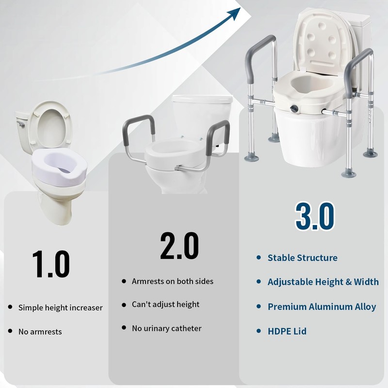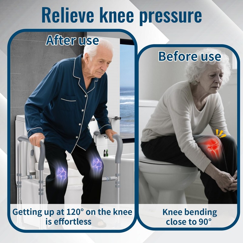 - 【Elevated for Comfort】 The 3.5-inch elevated toilet seat with handles reduces strain on knees and back. As a toilet booster seat for elderly, it promotes easier access, while the raised toilet seat with arms enhances overall comfort during use, also ideal for post-saurgery recovery or mobility challenges.