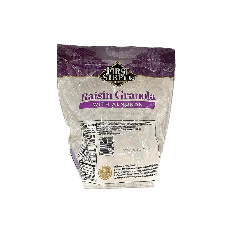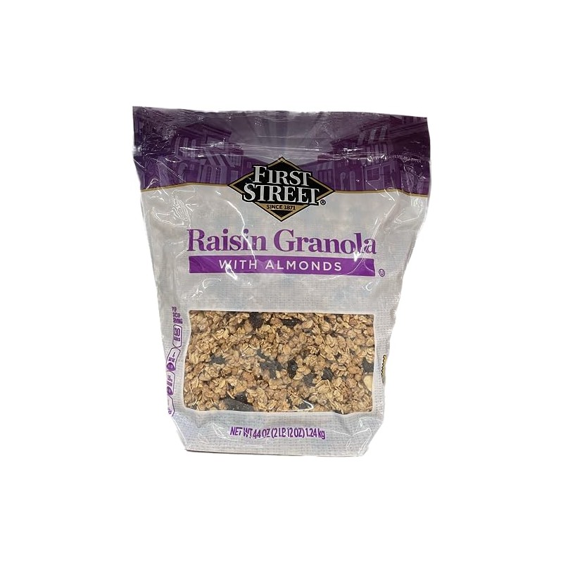 Low fat raisin granola is a good source of fiber. All natural a cholesterol free food for a satisfying breakfast.