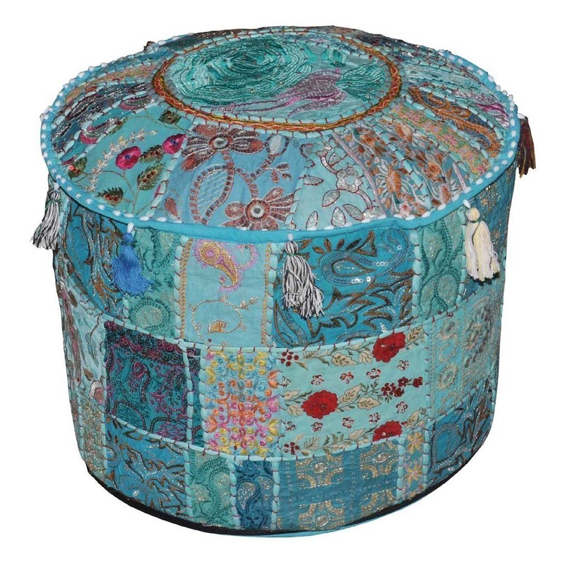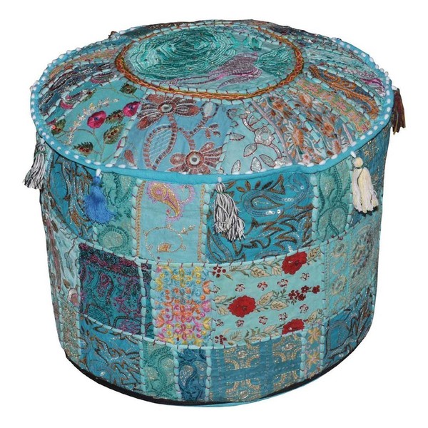 Rajasthali Indian Comfortable Floor Cushion-Cotton Ottoman Embellished with Patchwork and Embroidery Work, 18 X 13 Inches
