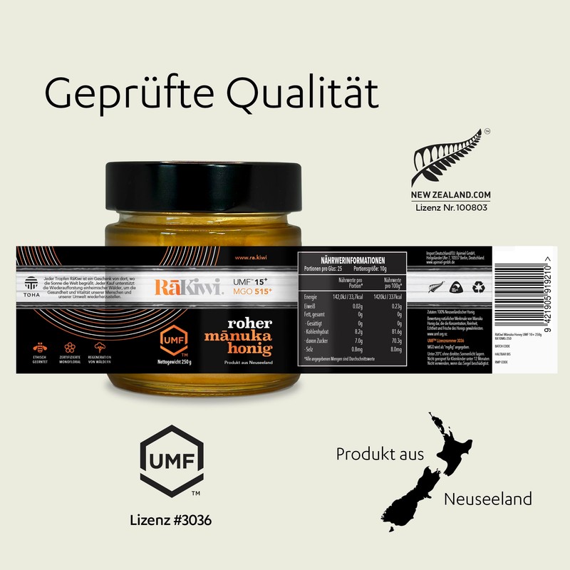 RāKiwi REVIVE Manuka Honey UMF 15+ (MGO 515+) - High Bioactivity, Premium Quality from New Zealand, 250 g
