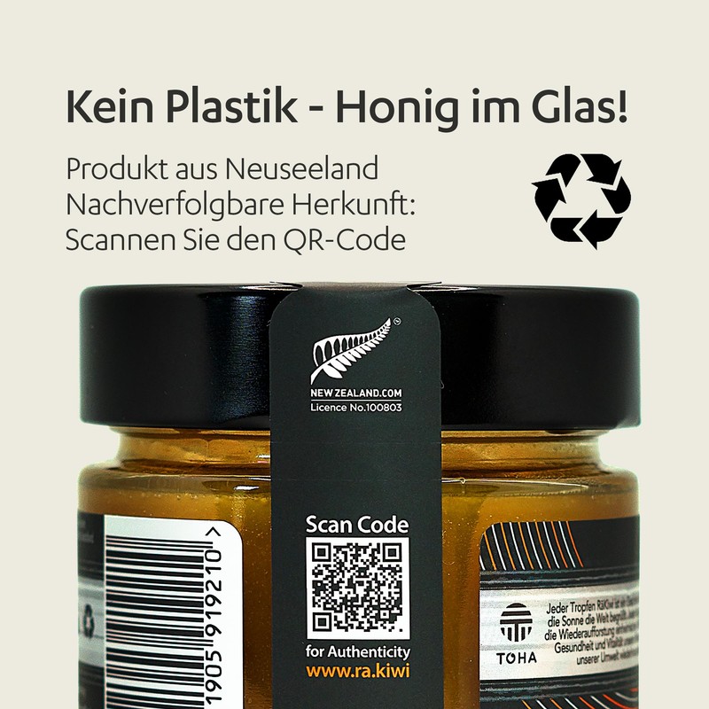 Flavor: | RāKiwi Revive impresses with its bittersweet, slightly nutty taste and a fine, velvety consistency. This dark amber manuka honey is naturally gluten-free and a delicious addition to your daily diet. |