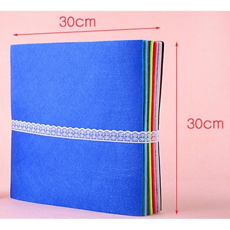 - Sheets of colored felt. Choose from 3 sizes: 11.8 x 11.8 inches (30 x 30 cm), 5.9 x 3.9 inches (15 x 10 cm), or 3.9 x 3.9 inches (10 x 10 cm). Thickness: Approx. 0.04 inches (1 mm).
