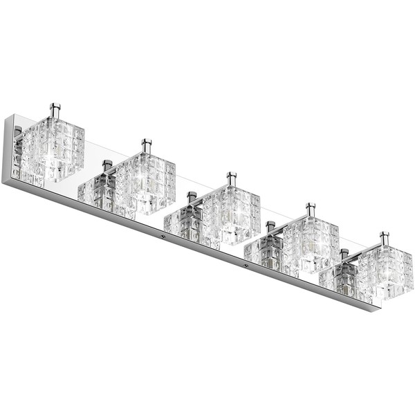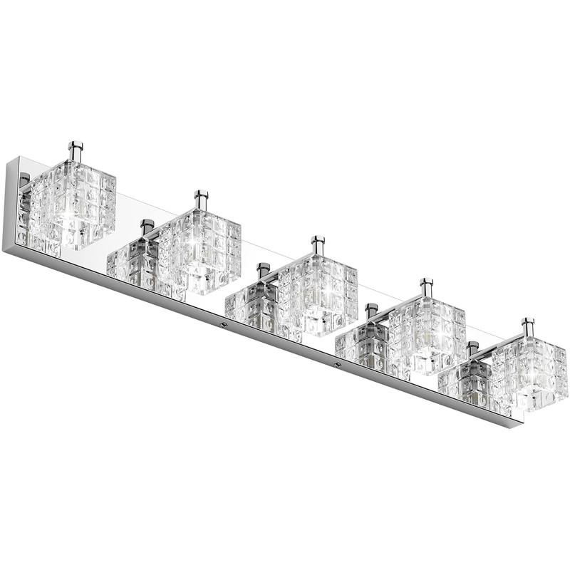 Ralbay Chrome Bathroom Vanity Light Fixtures 5 Lights Modern LED Chrome Vanity Light Over Mirror Modern Crystal Vanity Lights