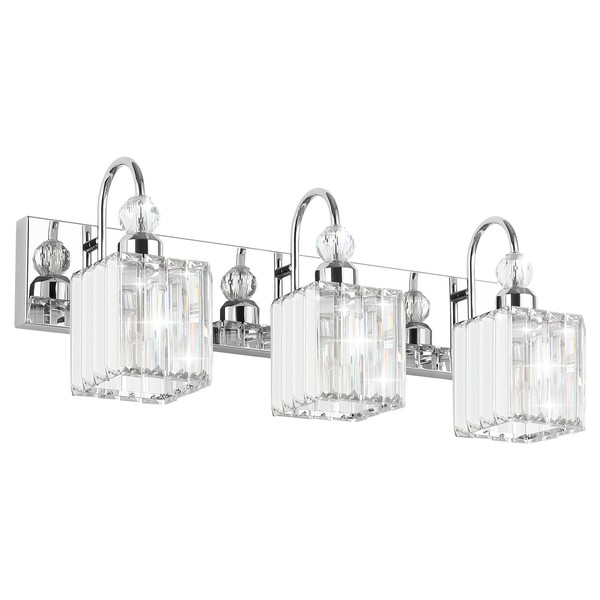 Ralbay Chrome Crystal Bathroom Vanity Light - 3-Lights, 24" Modern Wall Light Fixtures