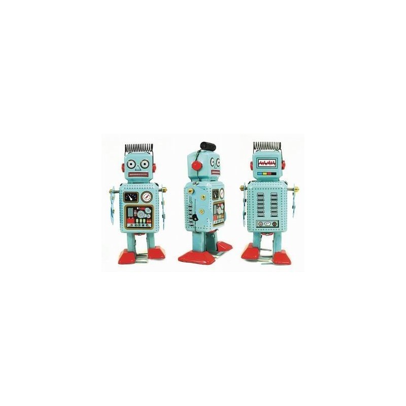 Ralph Robot also known as the Blue Radar Robot. This Robot Tin Toy Collectible has great graphic detail, all metal construction with stumble around walking action. 11 cm. tall. These items are NOT CHILDREN'S PLAYTHINGS and do not comply with Toy Safety Legislation - for adult collectors only. Please note robot colours may vary from image shown.