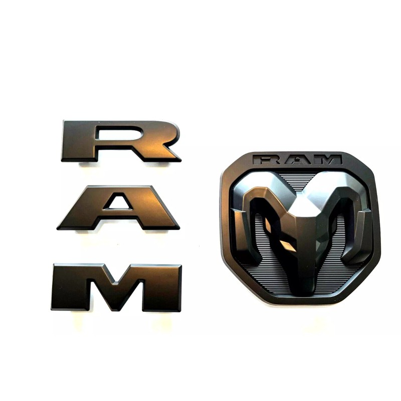 RAM. 2PCS Set Matte Black Front Rear RAM Head Emblem Badges Mopar 2019-2023 Ram 1500