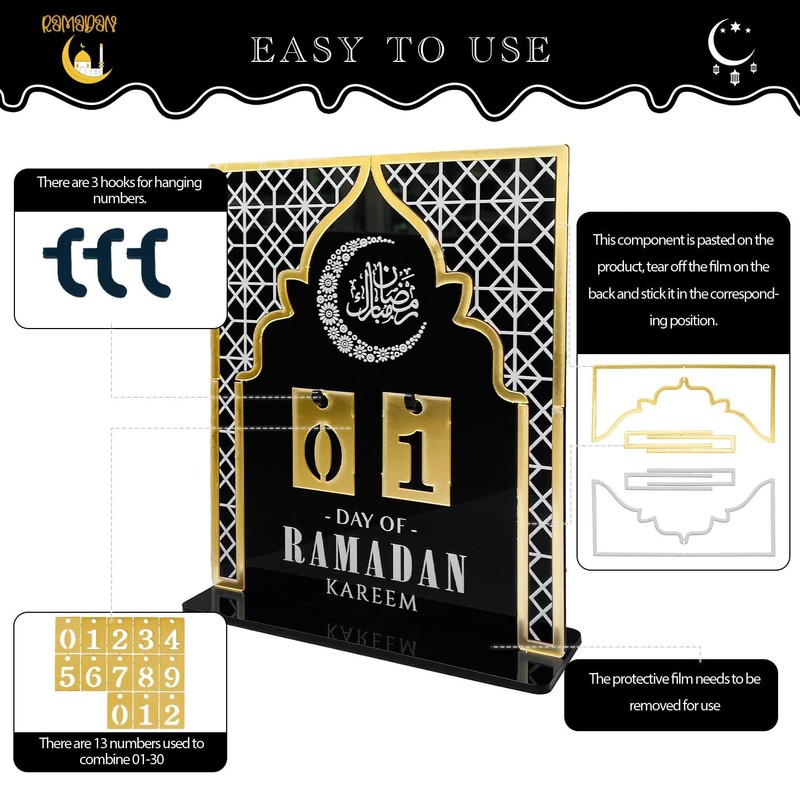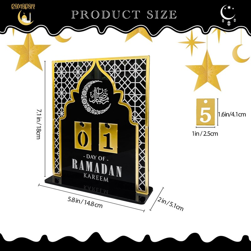 - 【Festive Ramadan Countdown】spice up your Ramadan decorations with a daily dose of excitement with both kids and parents. Keep track of days in a visually appealing way with this Ramadan countdown calendar. Experience the joy of anticipation as you change the date numbers each day, adding a strong festive atmosphere to your Ramadan celebrations