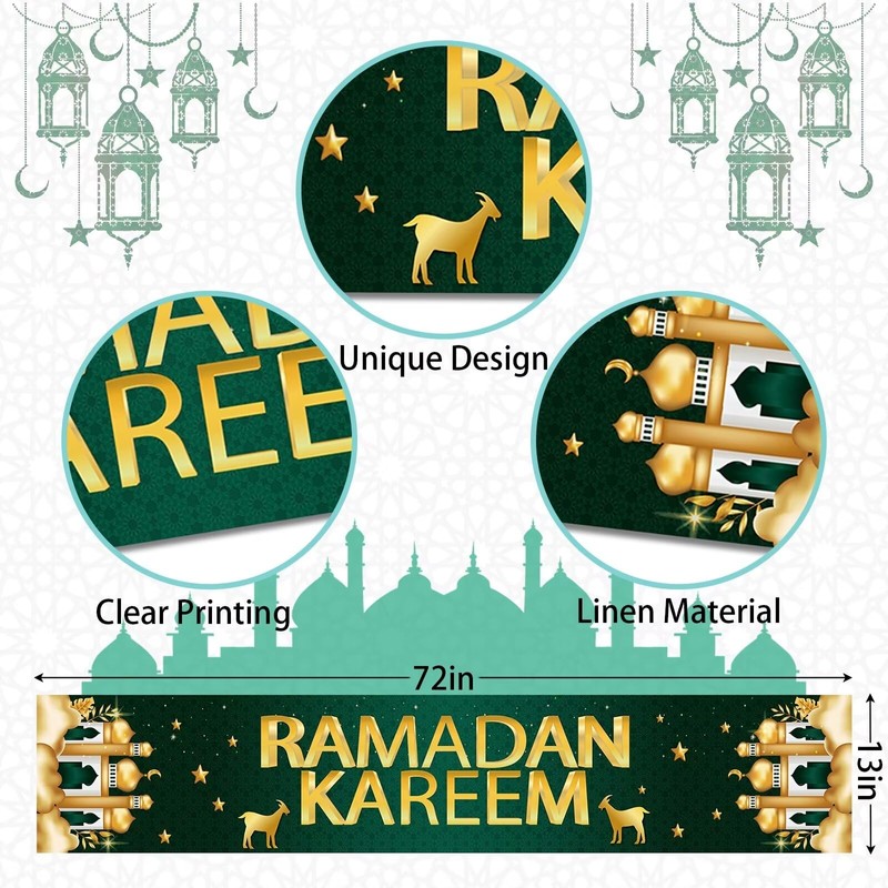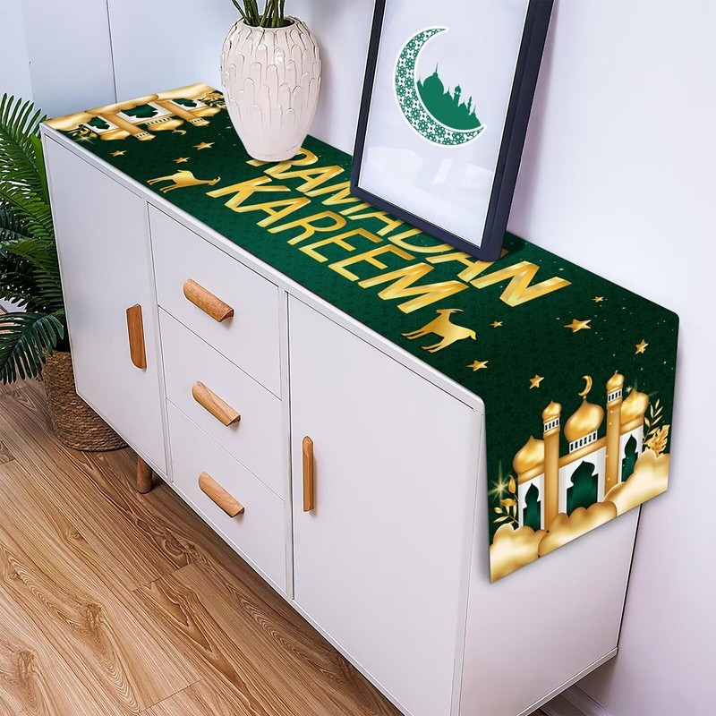 Ramadan Kareem Table Runner, Ramadan Decorations for Home Table Green Gold Table Runner Ramadan Table Decorations Ramadan Mosque Table Runner for Islamic Happy Ramadan Mubarak Festival Party Supplies