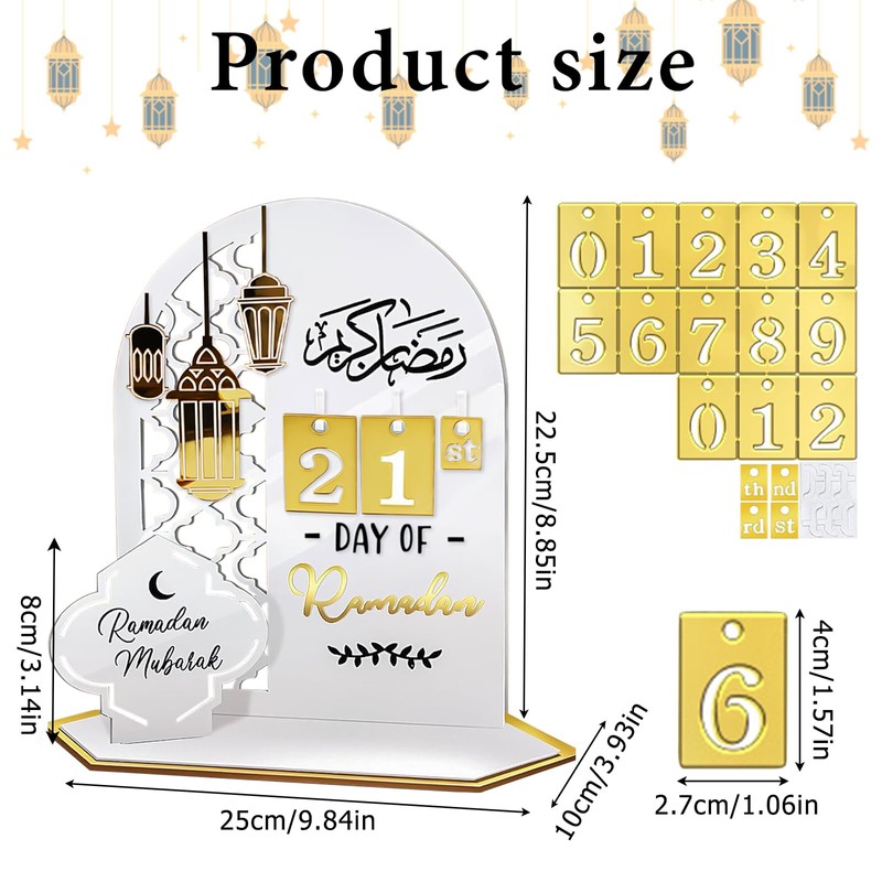 - Ramadan calendar made of acrylic: you will receive 1 Ramadan countdown calendar, our Ramadan calendar is Ramadan theme, specially developed for Muslims. This Eid Mubarak calendar has an exquisite look that complements your living style