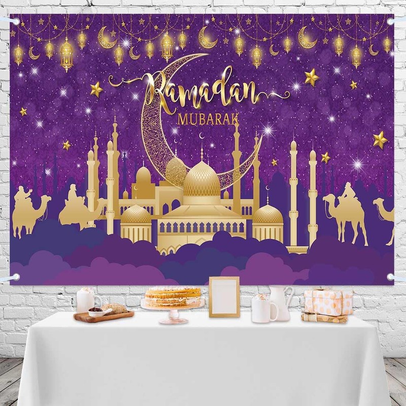 Ramadan Mubarak Banner Backdrop, First Day of Ramadan Eid Mubarak Large Banner Party Decorations Supplies, Sign Poster Background Decor 72X44 Inch