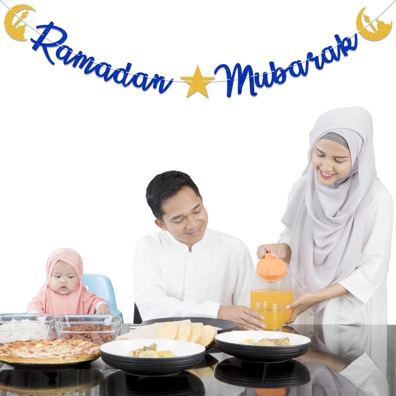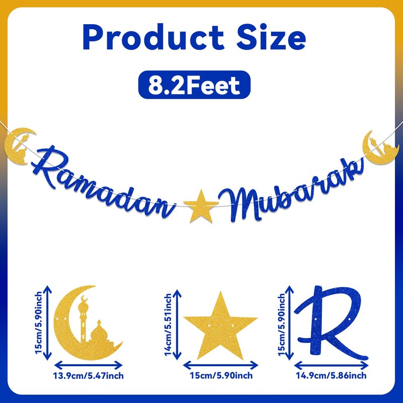 - PACKAGE: Blue glitter Ramadan Mubarak banner with rope to hang