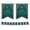 Ramadan Mubarak Bunting Decorations (Green & Gold Design) - Ramadhan Kareem Banner Flags Hanging Decor for Home Domes Lanterns Moon Star