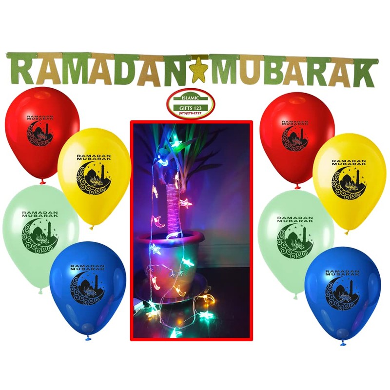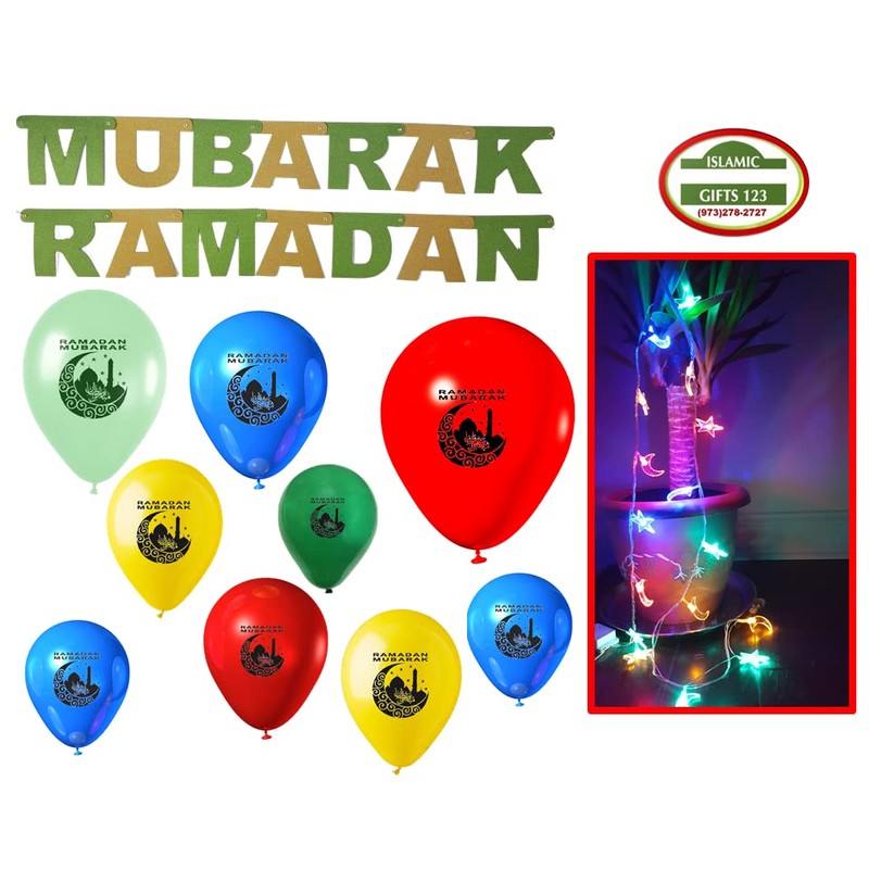 - 🔴RAMADAN MUBARSK set of 32 >30 Balloons + 1 string light + 1 glitter banner🔴ISLAMIC GIFTS 123 NC