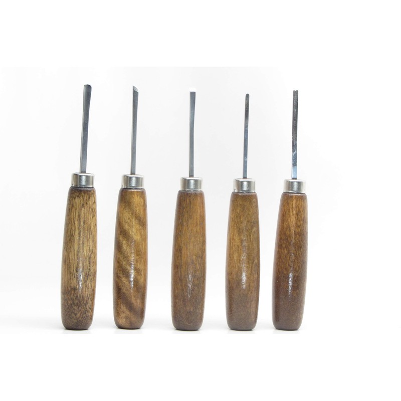 These six-tool sets are particularly good for intricate work because of the chisel sizes. The overall design of the tool keeps your fingers close to the cutting edge with the comfortable round style handle. Made of high quality tool steel, polished and buffed to sharpened finished and ready for use. Overall length 5-1/2”, blade length 1-3/4". 5pc Sub miniature Set Straight Handle Set Includes: 3/16″ (3.0mm) Gouge, 3/32″ (2.4mm) Veiner, 3/32″ (2.4mm) Bent Parting, 3/16″ (4.3mm) Skew, 3/16″ (4.3mm) Bent Chisel. Made in USA