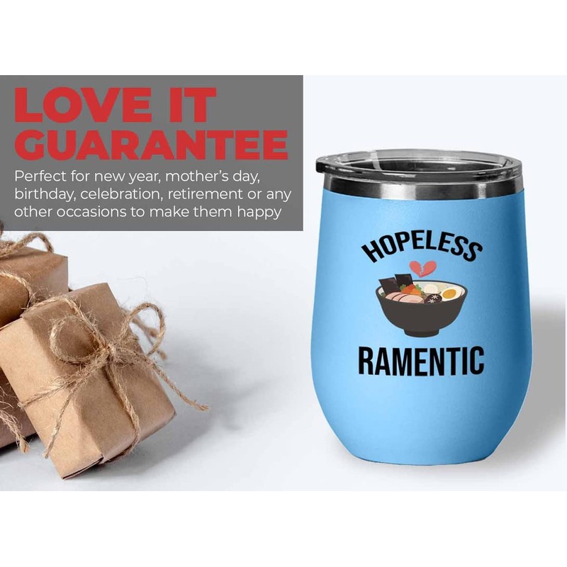 Ramen Lover Gift Blue Edition Wine Tumbler 12oz - Hopeless Ramentic - Japanese Food Sarcasm Funny Food Lovers