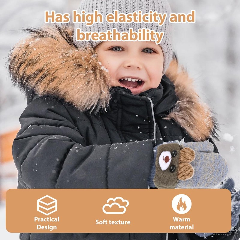 RAMGLYO 1 Pair Kids Knitted Gloves Stretch Mittens Plush Lining Gloves Mitten...