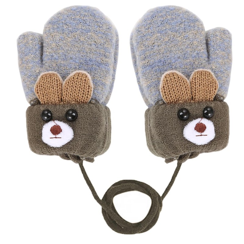 RAMGLYO 1 Pair Kids Knitted Gloves Stretch Mittens Plush Lining Gloves Mittens Winter Warm Mittens Full Finger Gloves with String for 1-3 Years Old Boys Girls