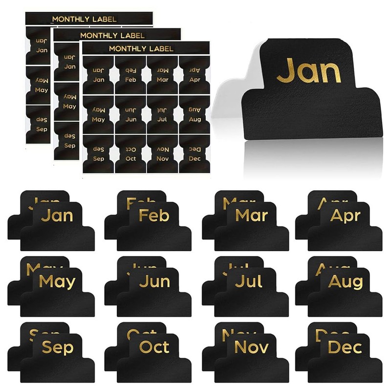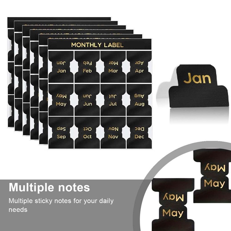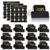 RAMGLYO 36 pieces calendar stickers, 12-piece set with black and gold monthly index labels, 1.57 x 1.18 inches, for calendar planner, calendar organiser, calendar stickers, calendar stickers