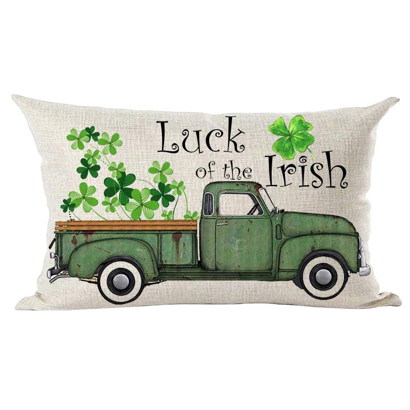 - Ramirar Happy St. Patrick's Day Spring Black Word Art Quote Luck Of The Irish Oil Painting Retro Green Pickup Truck Clovers Decorative Lumbar Throw Pillow Cover Decoration Cotton Linen Rectangular 12 x 20 Inches