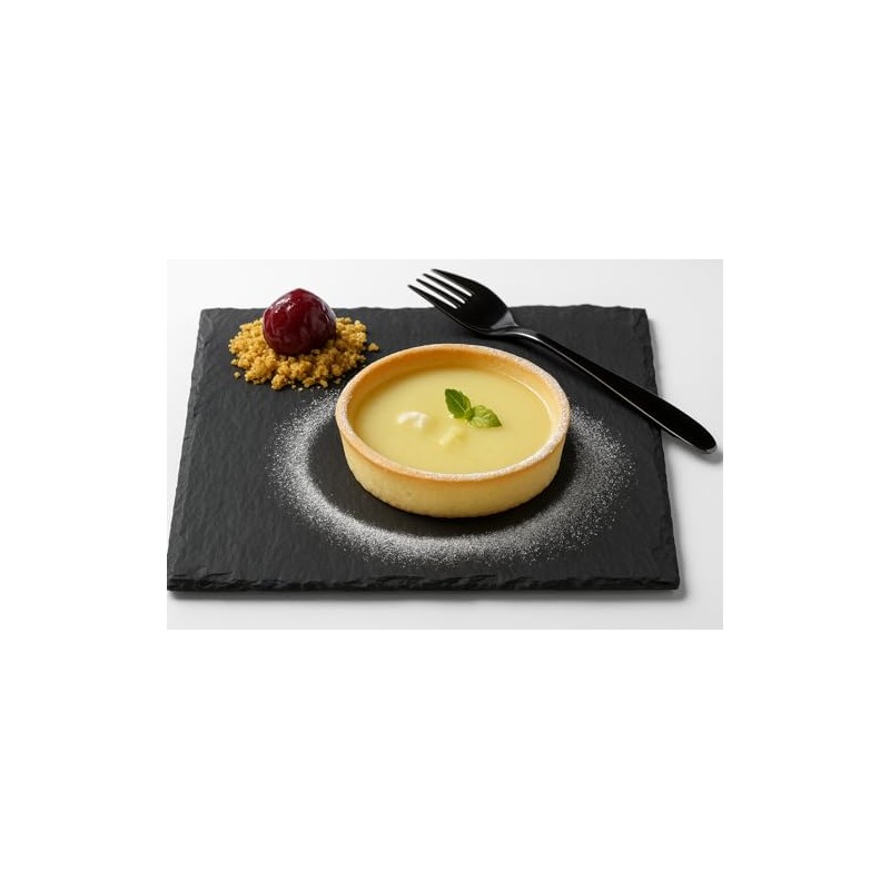 Entworfen für Vielseitigkeit, geeignet zum Servieren von Käse, Sushi, Tapas, Desserts, Fleisch, Vorspeisen und Obst. Das natürliche Schiefermaterial ist hitzebeständig, sodass es sowohl für heiße als auch kalte Speisen verwendet werden kann, ohne sich zu verziehen oder zu beschädigen. Die nicht poröse Oberfläche ist hygienisch und leicht zu reinigen, während das flache Design Stabilität beim Plattieren, Anordnen oder Schneiden von Lebensmitteln gewährleistet.