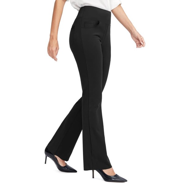 Rammus Womens High Waist Yoga Dress Pants with 5 Pockets High Waist Stretch Work Pants for Women Bootcut Leg Slacks for Office Business Casual