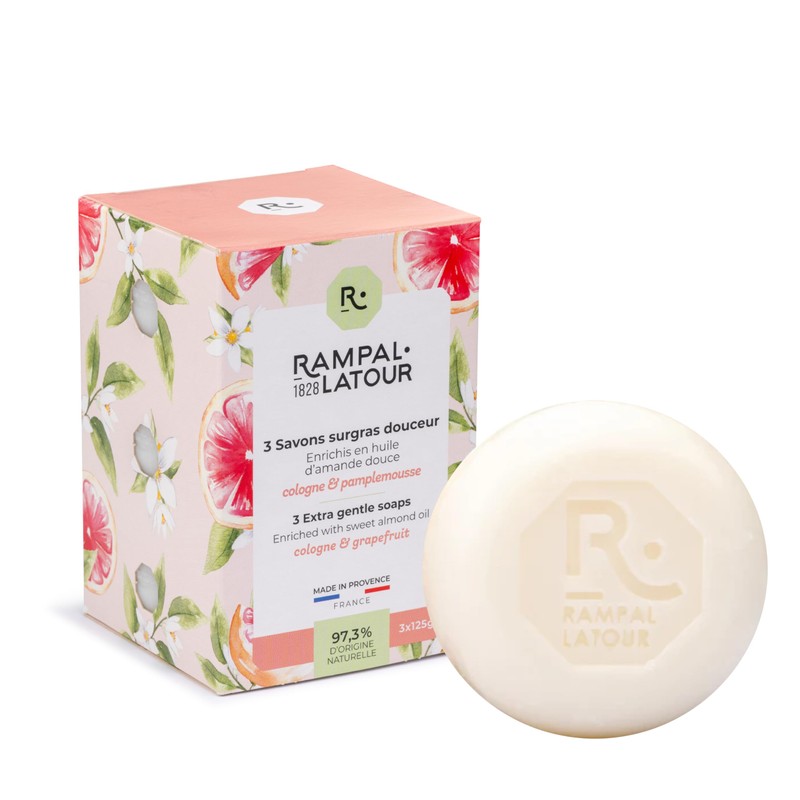 Rampal Latour Cologne Grapefruit Soap- 3 Bar Pack 125g Each Made in France
